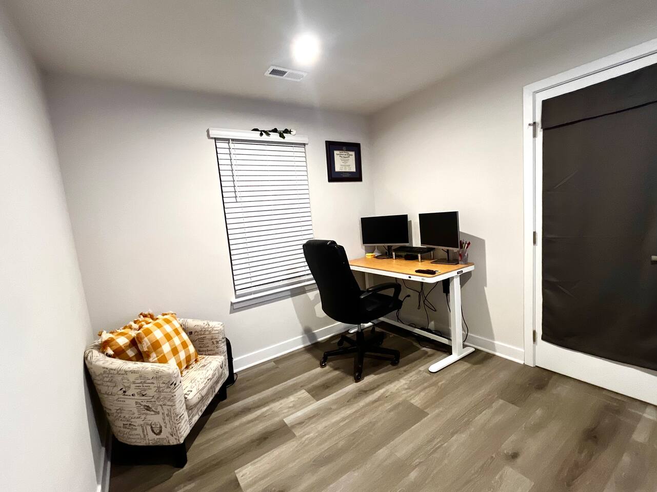 Your private retreat is a secure, lockable suite located on the third floor of a quiet, new townhome, designed for your ultimate comfort. Your Private Stay Includes: - A comfortable bed for a restful night's sleep. - A 40-inch TV with Roku for your entertainment. - A bathroom featuring a bathtub, perfect for a relaxing soak. Optional Dedicated Workspace: For guests needing to work, an optional home office is available up to 3 days per week and on weekends. This quiet, naturally lit space is equipped with: - Two monitors - An adjustable desk - An HP DisplayLink for easy laptop connection *Please let us know in advance if you'd like to use the office so we can coordinate.